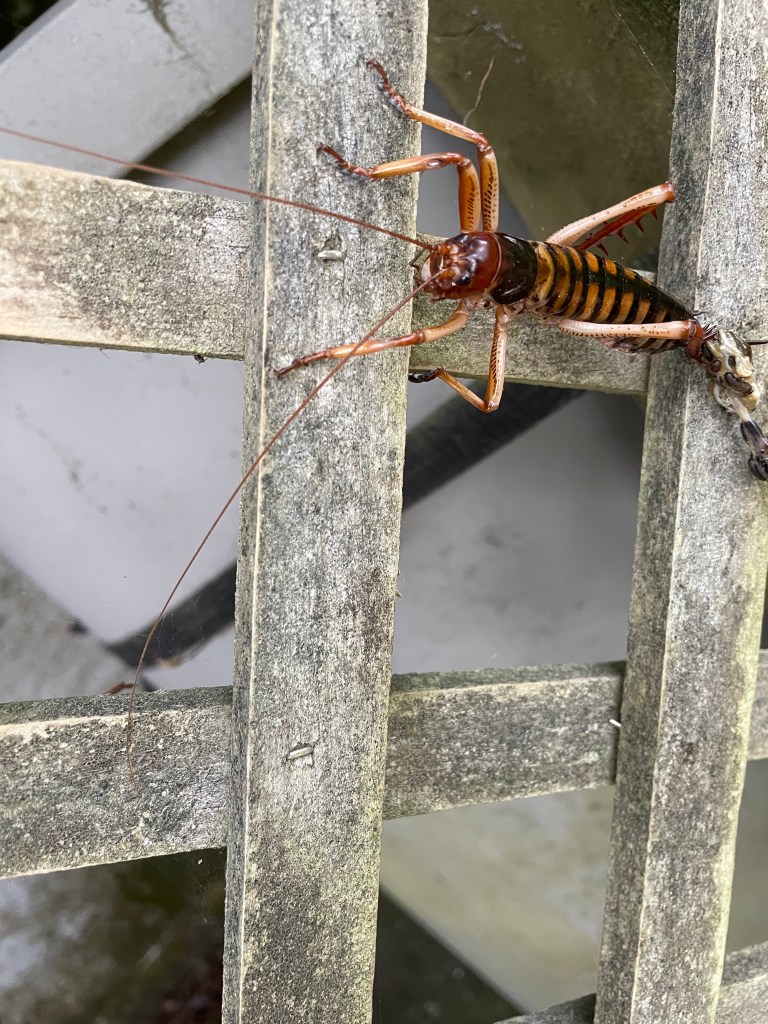 The mamaku grow and drop fronds at an amazing rate. We found a Wellington tree wēta in one of the fallen ones, and Sprocket has enjoyed munching the branches when given half a chance.